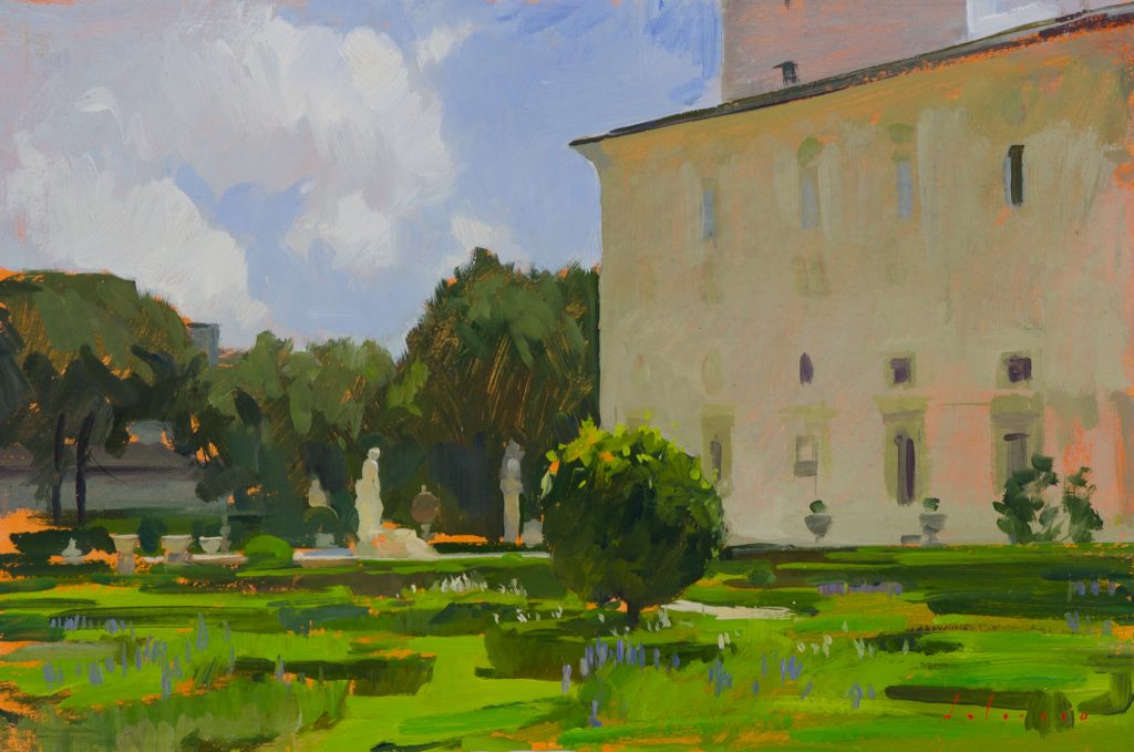 Example of a landscape painting commission: Piazza Tasso, Florence. 80 x 100 cm, oil on linen.